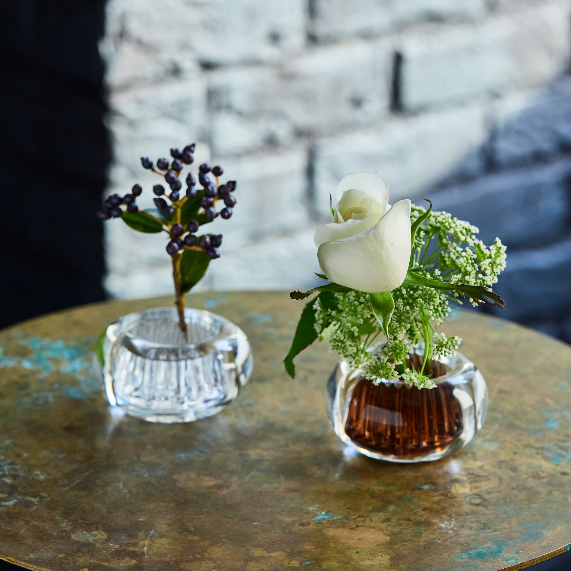 MICHI-KUSA is a petite vase inspired by the Japanese idea of pausing to enjoy small moments along the way. The clear glass base and kenzan allow you to display tiny roadside flowers with ease.