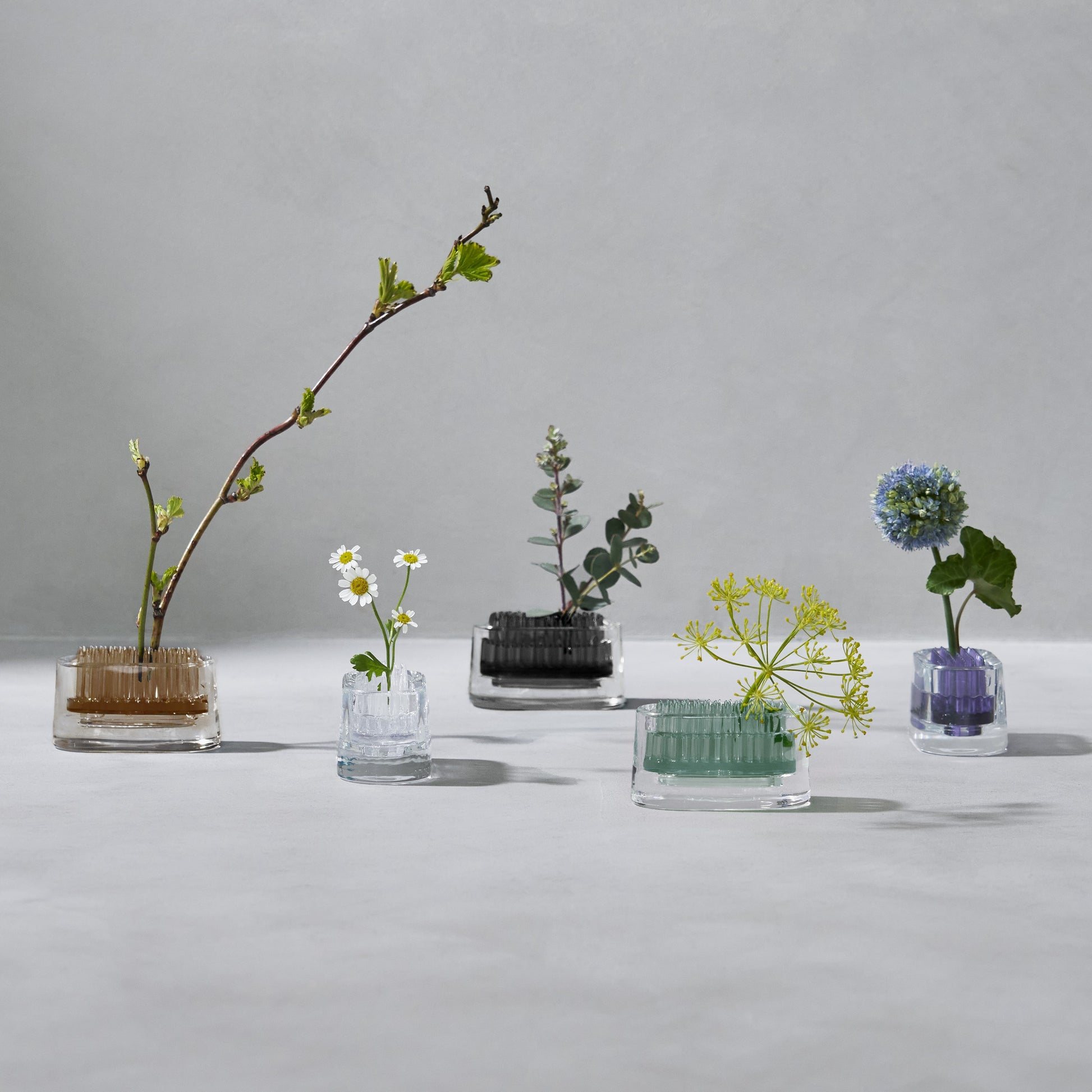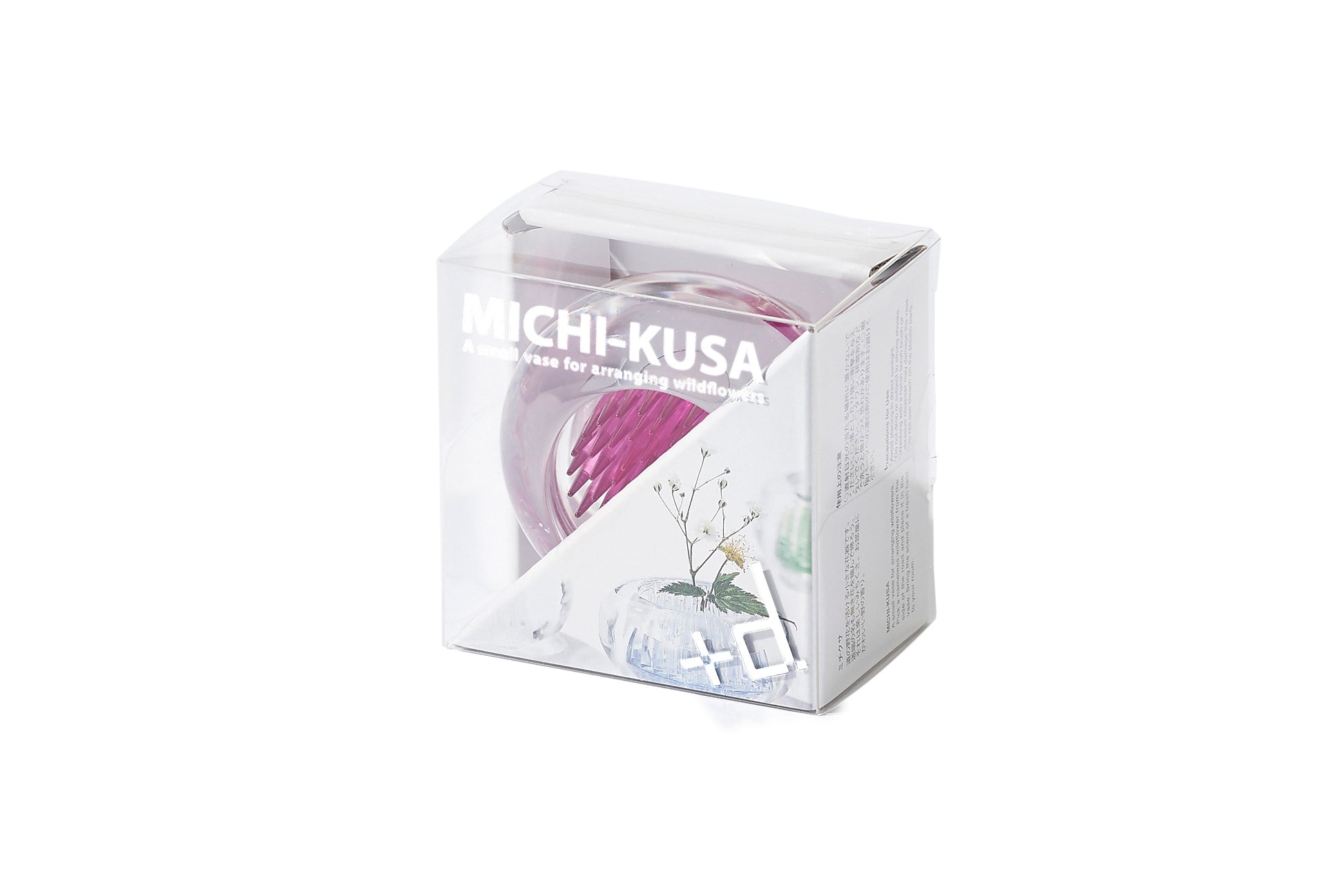 MICHI-KUSA is a petite vase inspired by the Japanese idea of pausing to enjoy small moments along the way. The clear glass base and kenzan allow you to display tiny roadside flowers with ease.